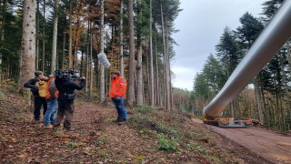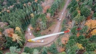 Voraussichtlich ab dem 20. November, gegen 9:00 Uhr, steht der Transport der drei 68 Meter langen Rotorblattteile zur Baustelle bevor. Für den Transport über die ca. 7 Kilometer lange Strecke von der Umladefläche an der B33 bis zum Anlagen-Standort werden Spezialfahrzeuge eingesetzt, die sich per Fernsteuerung bedienen lassen.